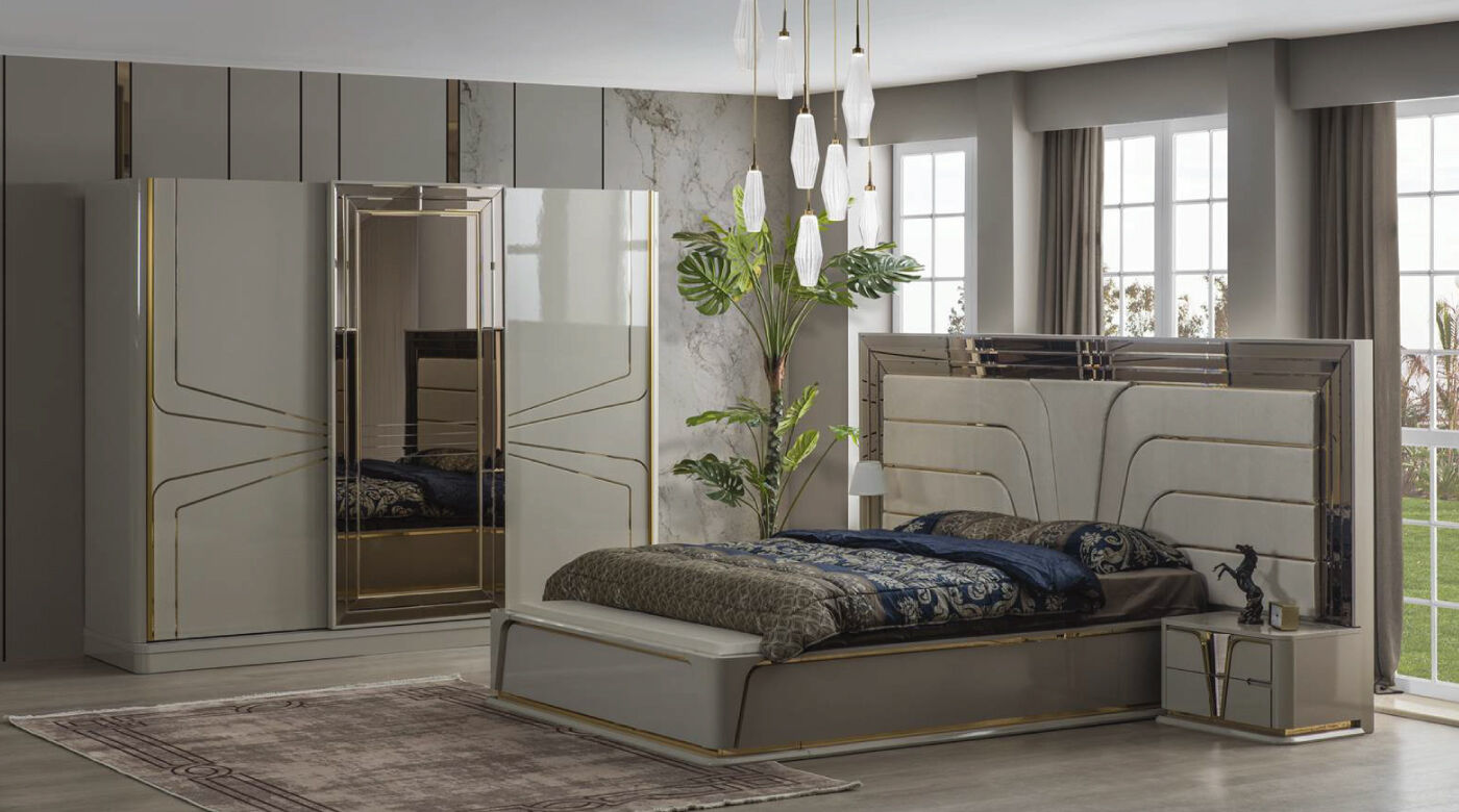 Golden Bed Set with Wardrobe