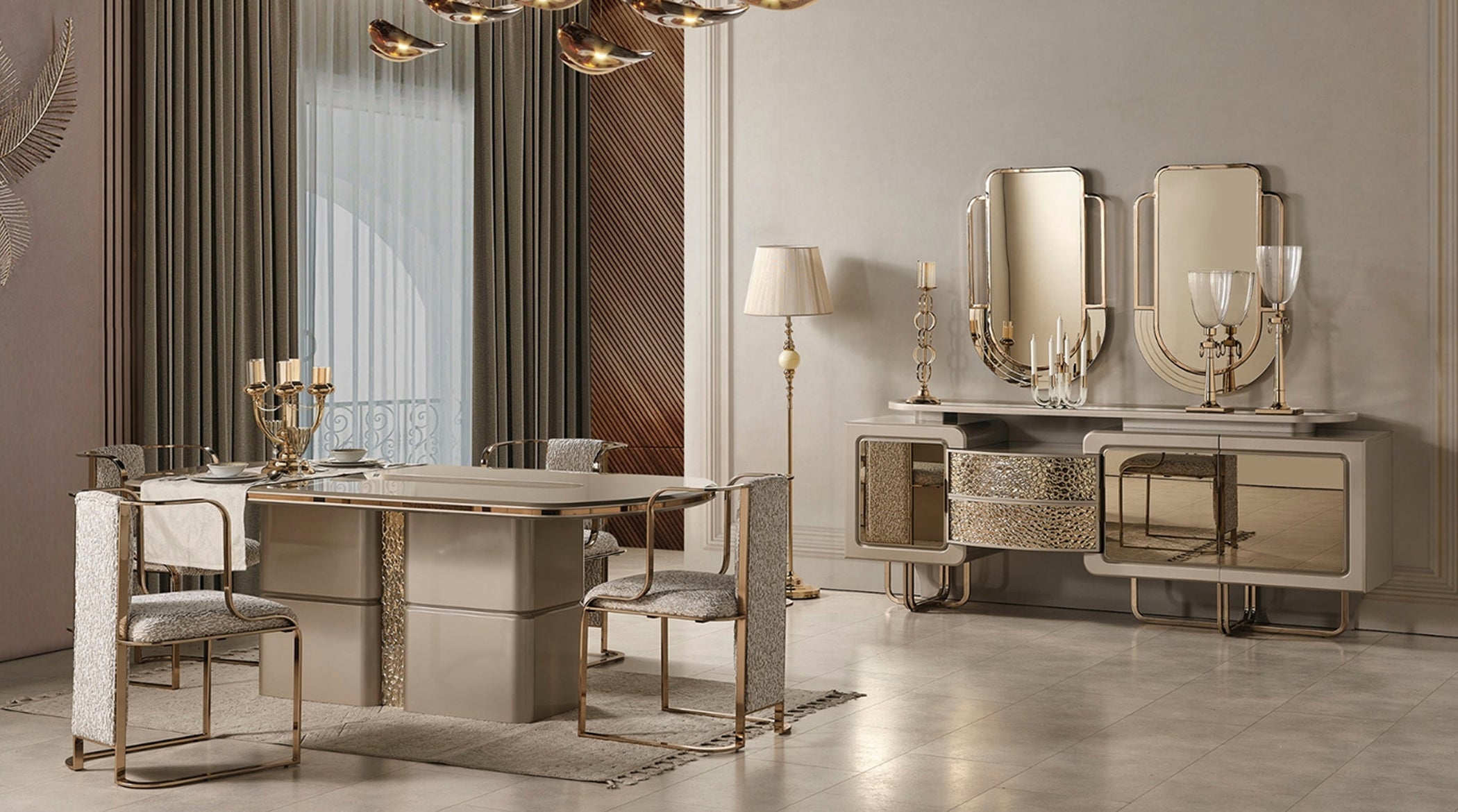 The set comes with Dining Table + 6 chairs + Console and Mirror