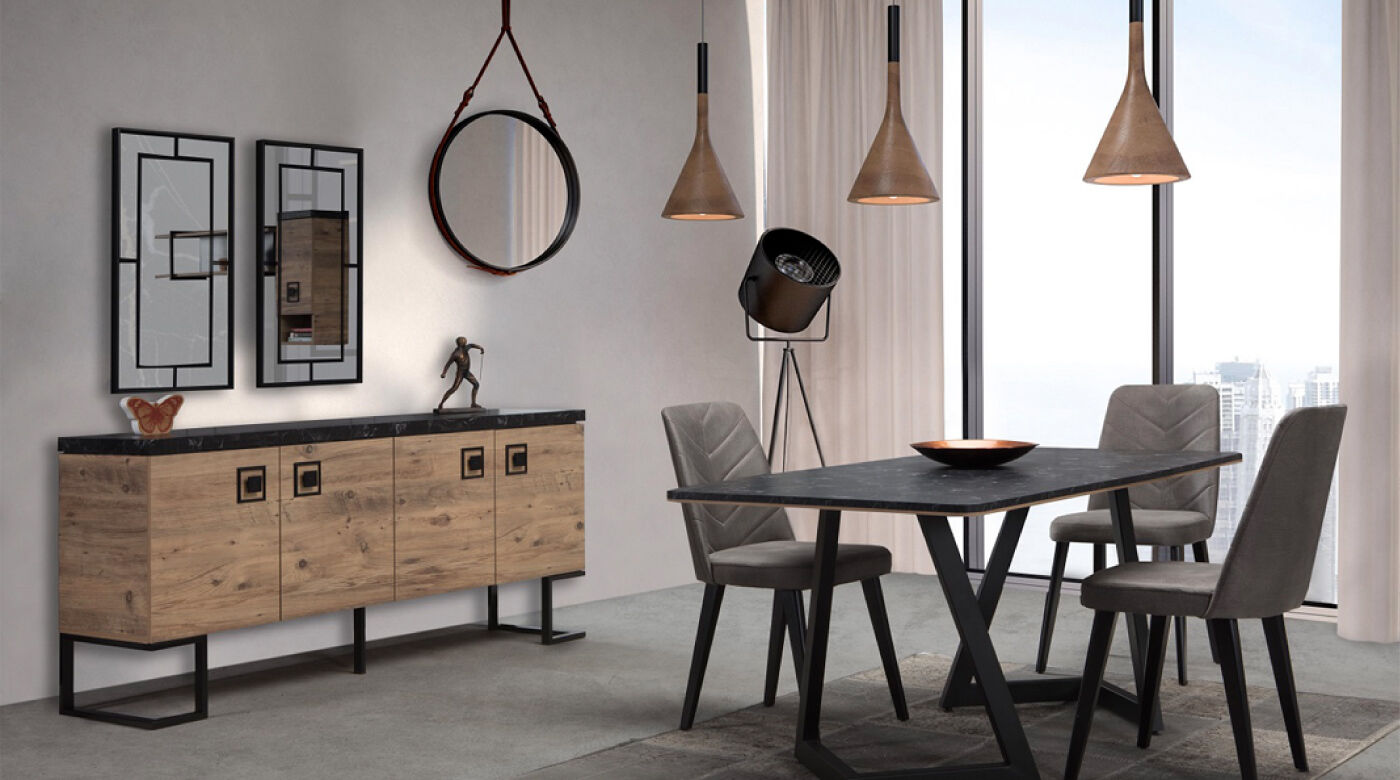 The set comes with Dining table + 6 chairs + Console & mirror